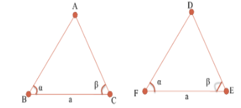 - Егер бір үшбұрыштың бір қабырғасы мен оған іргелес жатқан екі бұрышы екінші үшбұрыштың сәйкес қабырғалары мен оған іргелес жатқан екі бұрышына тең болса, онда мұндай үшбұрыштар тең болады.