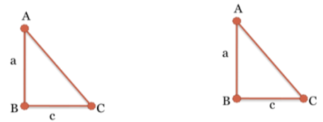 - Екі тікбұрышты үшбұрыштың бір-бір катеттері мен оларға қарсы жатқан сүйір бұрыштары тең болса, олар тең үшбұрыштар болады.