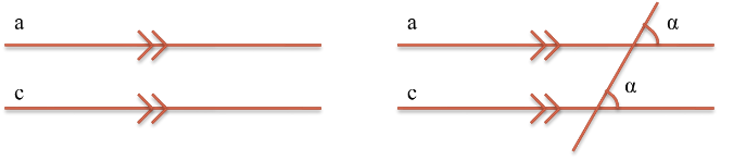 Екі параллель түзу басқа бір түзумен қиылысса, екеуі де бірдей бұрыш жасап қиылысады.