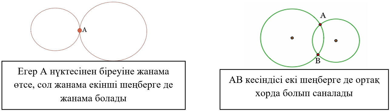 Екі шеңбер бір-бірімен бір немесе екі нүктеде қиылыса алады.
