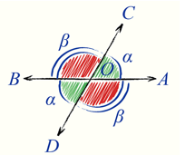 Екі қабырға қиылысып, пайда болған төрт бұрыштың тең бұрыштарын – вертикаль бұрыштар дейміз.