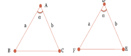 - Егер бір үшбұрыштың екі қабырғасы және олардың арасындағы бұрышы екінші үшбұрыштың сәйкес екі қабырғасы мен олардың арасындағы бұрышына тең болса, онда мұндай үшбұрыштар тең болады.